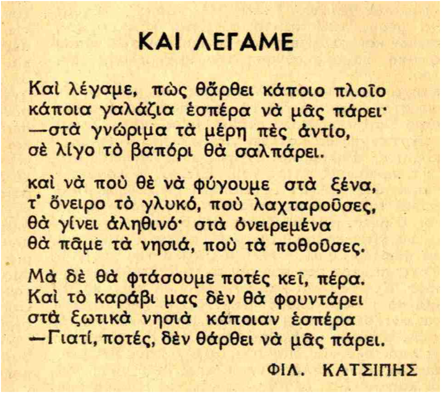 Η δημοσίευση του ποιήματος στο περ. « Πορεία